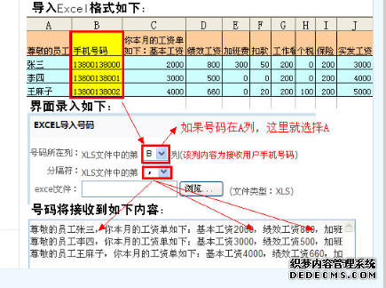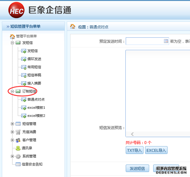 二、內(nèi)容有變量(如內(nèi)容里需插入稱呼、工資明細、物業(yè)管理費明細、快遞單號)的短信群發(fā)操作請選擇界面上左側(cè)導(dǎo)航條中的訂制短信,有三個模板供選擇