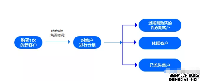 上圖中,可能大家會有疑問,怎么每把M值(購買金額)這個條件組合進去,比如近期購買的活躍客戶中再次細分:購買金額在500以上,購買金額500以下等等分組方法,至于具體怎么分,其實也有點仁者見仁智者見智的情況,那具體該如何對客戶分組才是比較合理的呢?我認為是:做客戶分組正確的思考方向,應該是針對業務需求尋找不同用戶不同的機會點,比如針對雙十一大促,更需要做的沖GMV,需要客戶回來購買,這才是根本目的,而且必須是短期效益分組營銷方式;