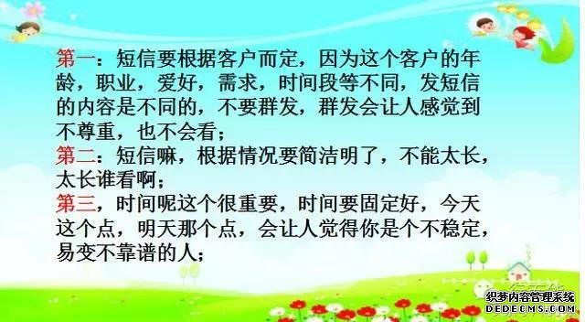 群發(fā)短信的內(nèi)容還應(yīng)盡量做到以下幾個(gè)方面,從而提高短信群發(fā)的推廣效果。