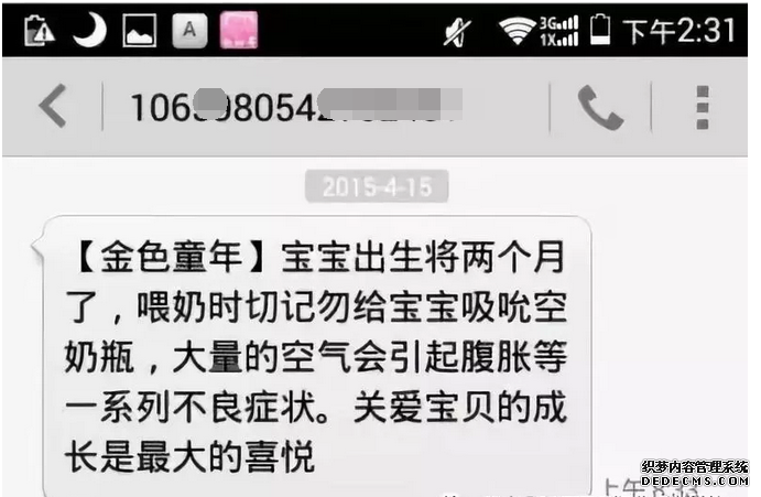 金色童年的知信營銷可以說非常的成功,因?yàn)樗麄冡槍Φ氖俏覀冞@些有孩子的父母,他們知道我們需要什么。所以,他們就以短信的方式一個(gè)月左右的時(shí)間發(fā)一次健康提醒,及需要注意的地方。一個(gè)月的時(shí)候注意什么,二個(gè)月的時(shí)候注意什么,他們幾乎每個(gè)月都會(huì)提醒一次,而不是像有些商家,恨不得一天發(fā)幾十條短信。