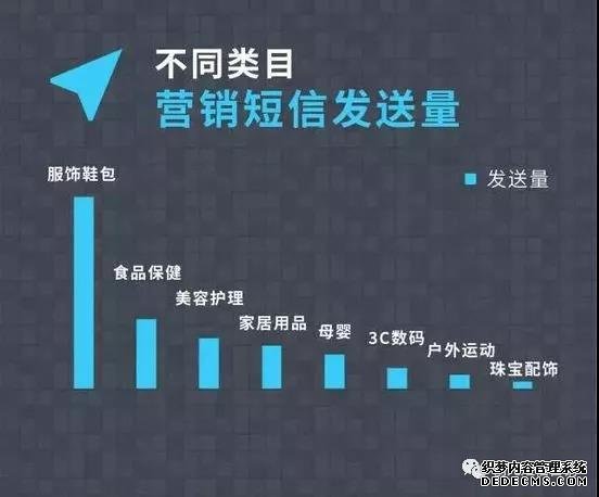 短信群發(fā)軟件發(fā)送量與成交額成正相關(guān)。營(yíng)銷短信發(fā)送量Top8類目分別為:服飾鞋包、食品保健、美容護(hù)理、家居用品、母嬰、3C數(shù)碼、運(yùn)動(dòng)和珠寶配飾。