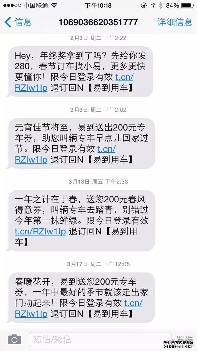 最后,還是滴滴,這條短信有價值的內容其實只是告訴用戶怎么退訂,這是逼用戶退訂的節奏??!