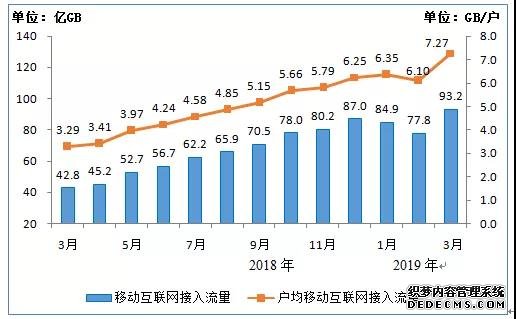 當月戶均移動互聯(lián)網(wǎng)接入流量(DOU)超7GB。一季度,移動互聯(lián)網(wǎng)累計流量達256億GB,同比增長129.1%;其中通過手機上網(wǎng)的流量達到255億GB,同比增長133.2%,占移動互聯(lián)網(wǎng)總流量的99.5%。3月當月戶均移動互聯(lián)網(wǎng)接入流量(DOU)達到7.27GB,同比增長121.1%