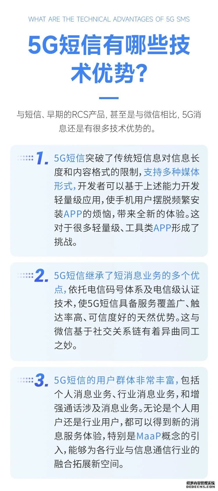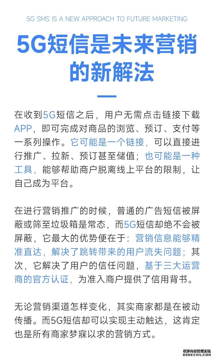 5G短信是對傳統(tǒng)短信的一次升級,它是一個(gè)開源的生態(tài),既在速度上提升了,更是在用戶體驗(yàn)上的重大升級,在未來的營銷中會(huì)有更多的應(yīng)用!